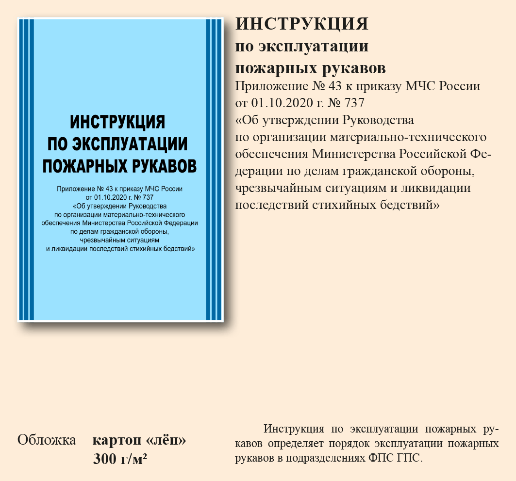 «Инструкция по эксплуатации пожарных рукавов» (Приложение № 43 к приказу МЧС России от 01.10.2020 г. № 737 (в ред. от 17.10.2025 г. № 935)